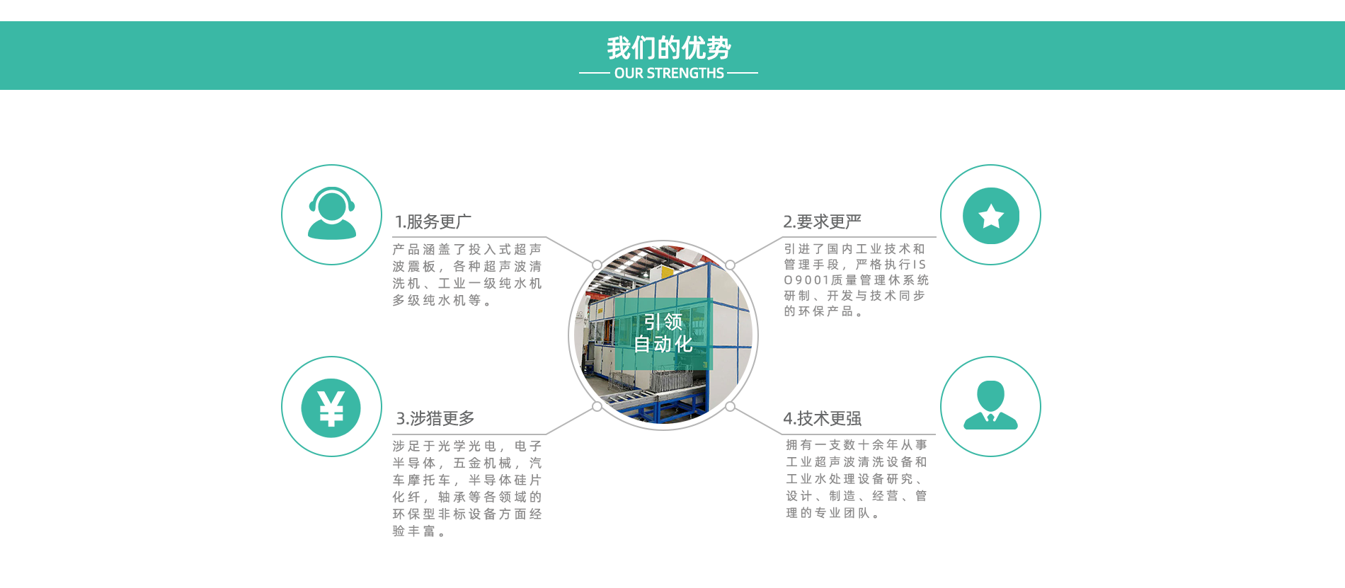 天津市引領自動化科技有限公司是由一支擁有數十余年工業(yè)超聲波清洗設備和工業(yè)水處理設備研究、設計、制造、經營、管理、銷售、服務于一體的企業(yè)。 公司匯集了一批長期致力于工業(yè)清洗設備和工業(yè)水處理設備研發(fā)、設計、制造的人才,引進了國內外的工藝技術和管理手段,嚴格執(zhí)行ISO9001質量管理體系,研制、開發(fā)與技術同步的環(huán)保產品。選用日本、美國等原材料、元器件,以設備、熱忱的服務、合理的價格為廣大用戶提供質量穩(wěn)定、外形美觀的十多個系列、百余個規(guī)格的超聲波清洗設備、高壓噴淋清洗設備、工業(yè)水處理設備。產品涵蓋了投入式超聲波震板,單槽式超聲波清洗機、多槽式超聲波清洗機、氣相型清洗機、自動型超聲波清洗機、碳氫類超聲波清洗機,高低壓噴淋清洗機等以及工業(yè)冷水機,工業(yè)一級純水機多級純水機等。 產品具備完善的售前,售中,售后服務制度。尤其在開發(fā)設計光學光電,電子半導體,五金機械,汽車摩托車,電池,半導體硅片,化纖,軸承等各領...